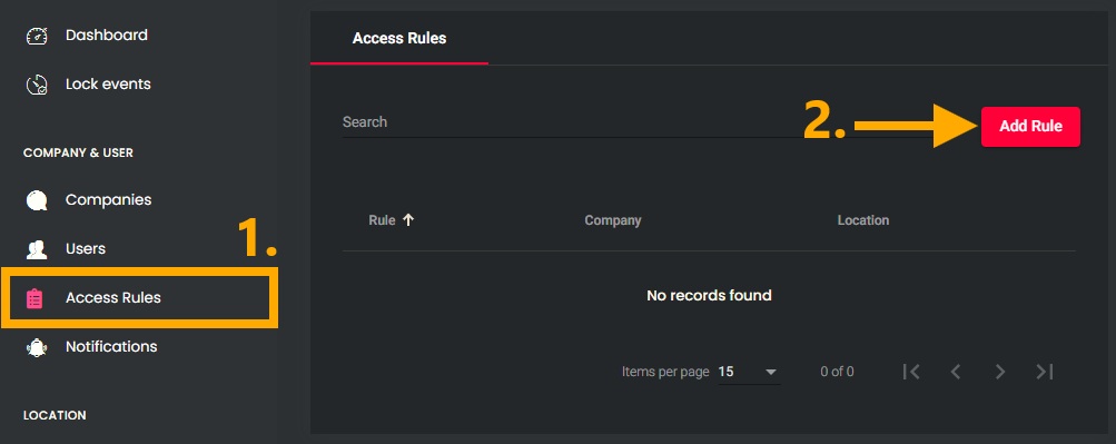 - In the left-hand menu, under the “COMPANY & USER” section, open the “Access Rules” menu item.