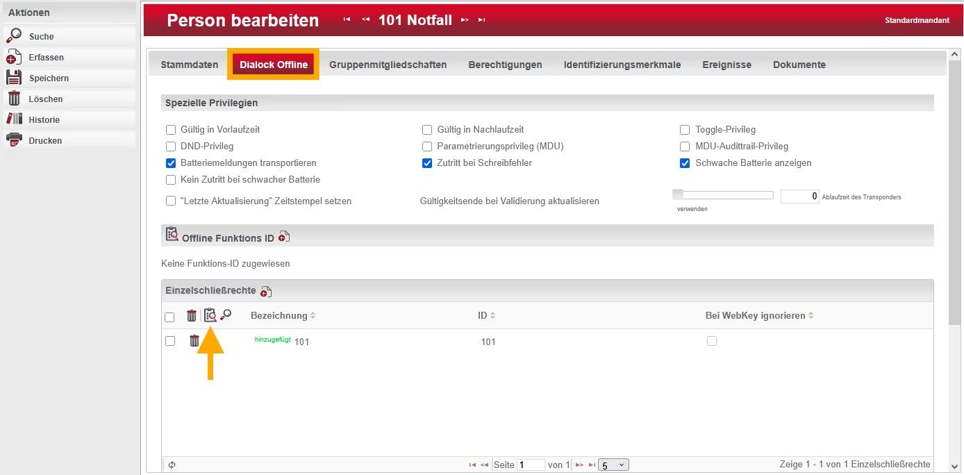 2. Im Abschnitt "Einzelschließrechte" auf das Klemmbrett mit der Lupe klicken.