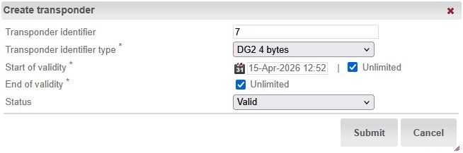 2. In the “Transponder” section, click the plus icon.