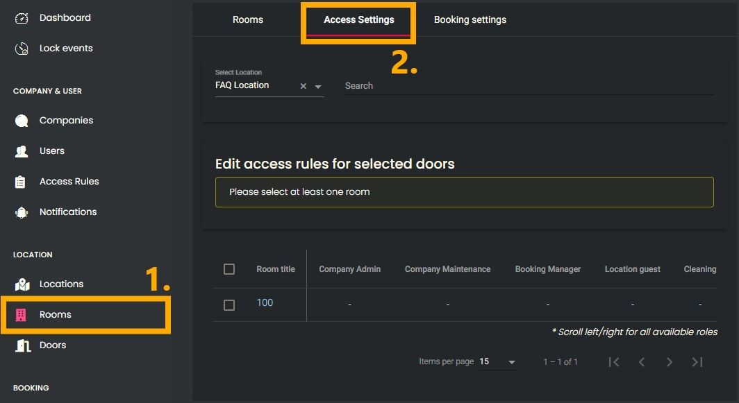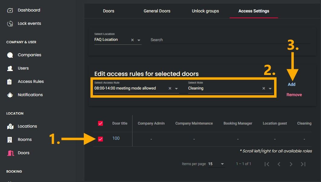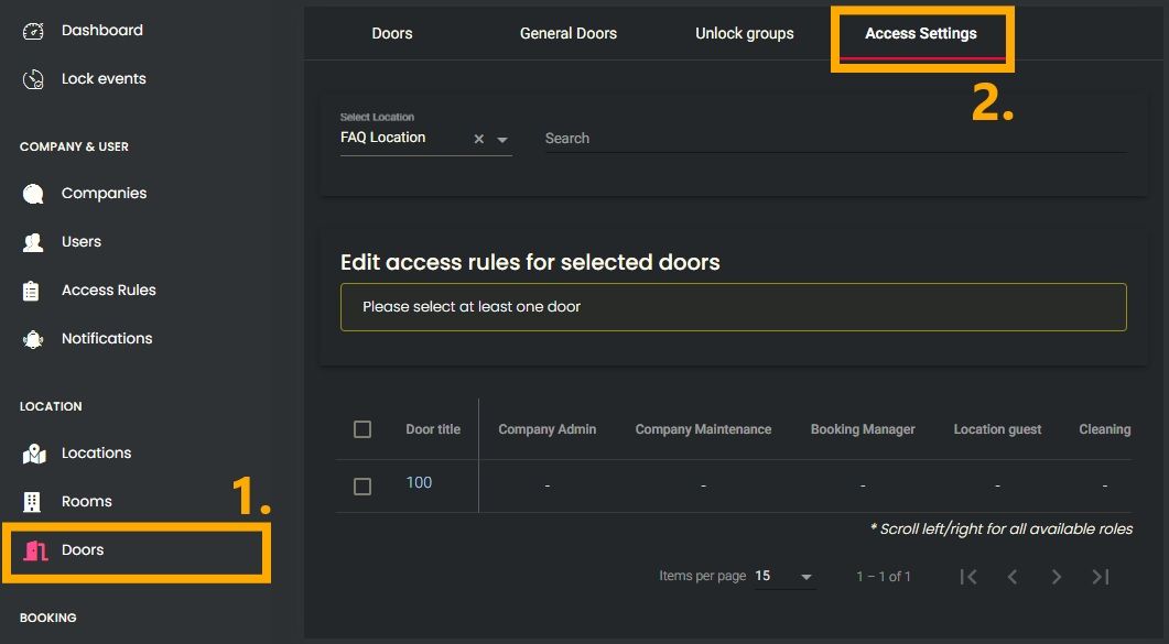IMPORTANT! Access rights should always be assigned via rooms. Assignments via doors should be used exclusively for time restrictions on location guests.