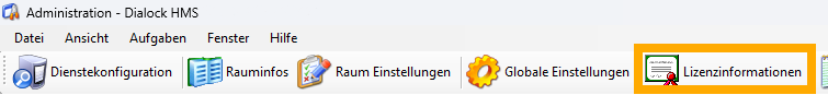 Öffnen Sie die Anwendung "Administration". Klicken Sie hier im Menü auf "Lizenzinformationen".