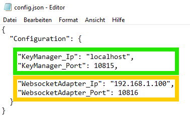 Alle weiteren Angaben bleiben im Normalfall unverändert. Die KeyManager_Ip sowie den KeyManager_Port können Sie in der Konfiguration des KeyManagers gegenprüfen, indem Sie auf den Eintrag des KeyManagers in der Dienstekonfiguration der "Administration" doppelklicken.