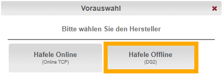 - Wählen Sie als Hersteller "Häfele Offline" aus.