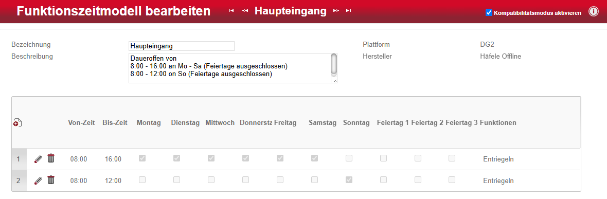 - Falls Sie ein Zeitfenster löschen möchten, aktivieren Sie im Fenster "Funktionszeitmodell bearbeiten" den Kompatibilitätsmodus.