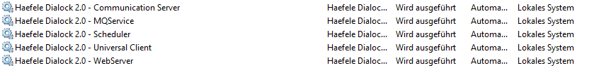 WICHTIG! Warten Sie nach dem Neustart eines oder mehrerer Häfele Dienste ungefähr 5 Minuten, bis die Dienste vollständig gestartet sind.