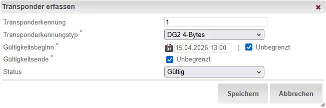 1. Tragen Sie die Personalnummer, die Sie sich gemerkt haben, als Transponderkennung ein.