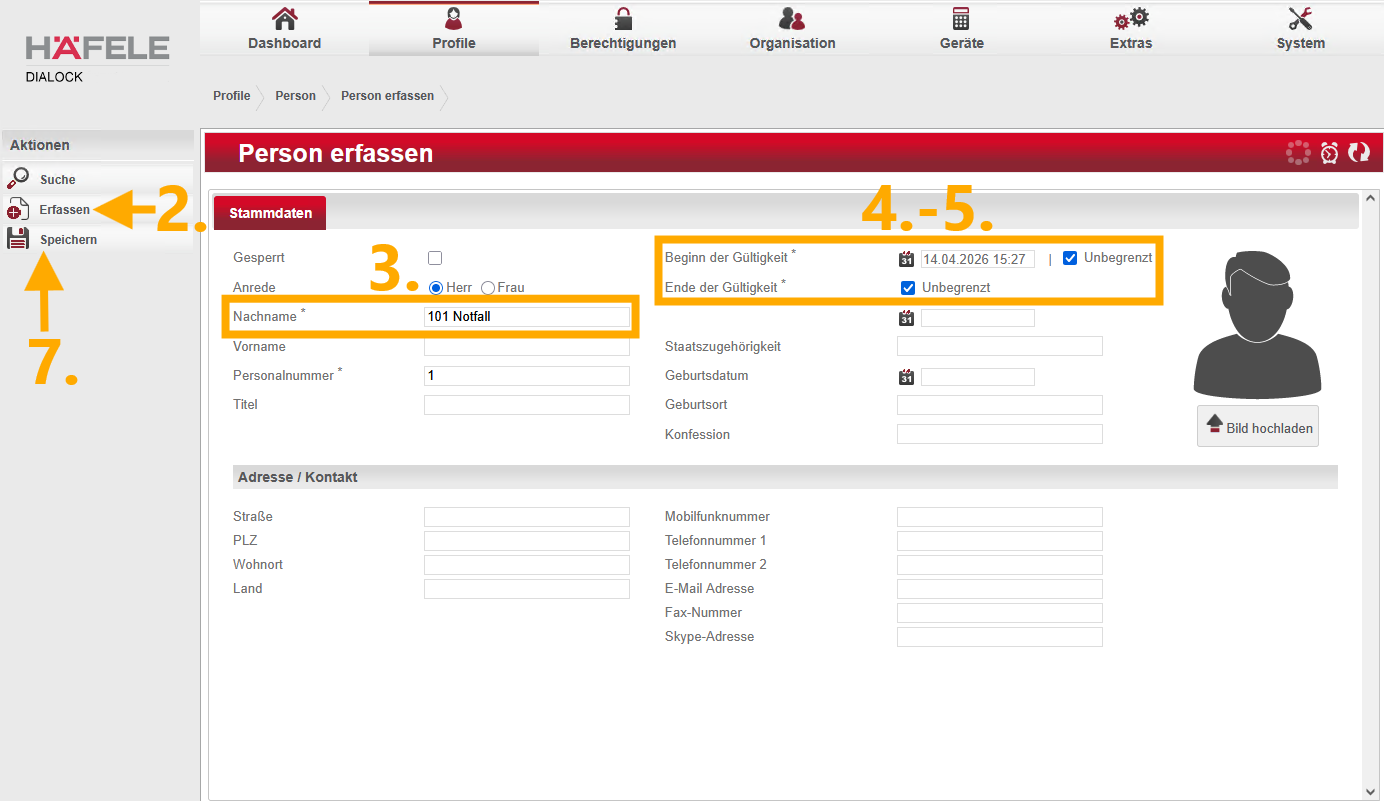 3. Geben Sie der Person einen passenden Namen, der die zugehörige Raumnummer beinhaltet (bspw. 101 Notfall).
