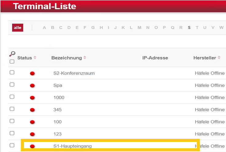 Wählen Sie das gewünschte Terminal aus der Terminalliste aus.