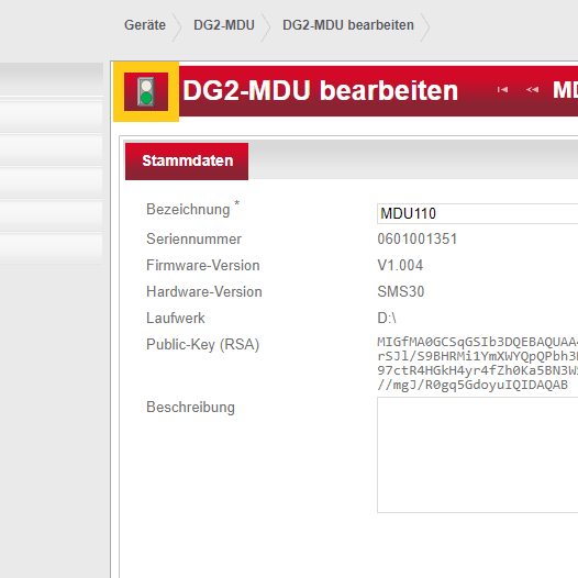 Loggen Sie sich in der Dialock 2 Weboberfläche ein und navigieren Sie zu "Geräte">"MDU".