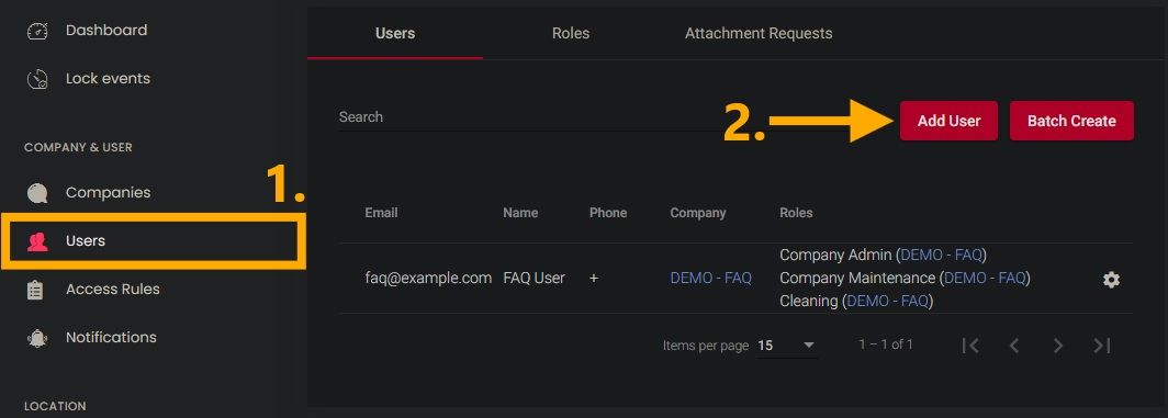 1. Im linken Menü im Abschnitt "COMPANY & USER" den Menüpunkt "Users" öffnen.