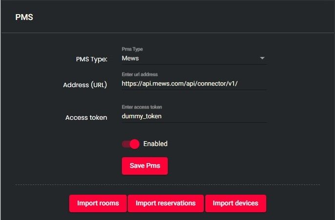 - Unter "PMS Type" den gewünschten PMS-Partner auswählen.