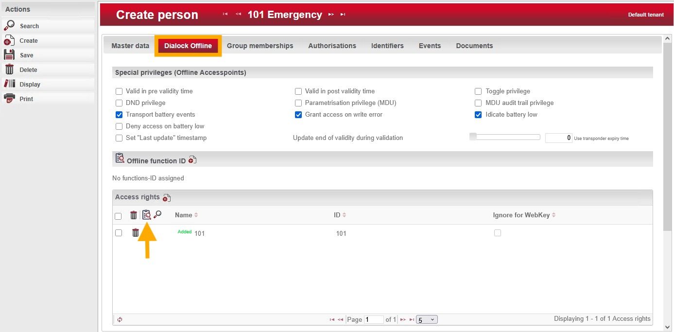 2. In the “Access Rights” section, click on the clipboard with the magnifying glass.