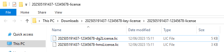 The unzipped folder should now contain a “-dg2License.lic” and optionally an “-hmsLicense.lic”.