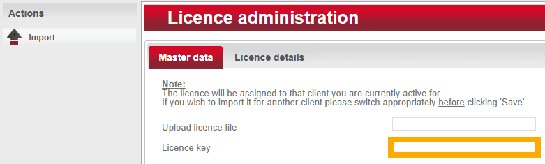 - Click on “Import” in the “Actions” menu on the left to import the license.