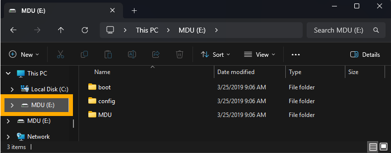 - Search for the connected MDU under the “This PC” section.