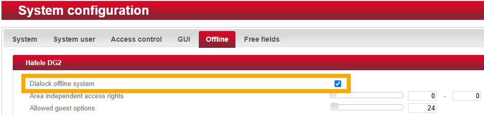 - Navigate to “System” > “System configuration” > ‘Offline’ > “Häfele-DG2”.