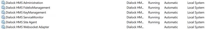 If all Häfele services are running (again), restart the Dialock HMS services. The “Administration”, “KeyManagement” and “Service Monitor” services should always be available; all other services shown here are optional and their necessity depends on whether a PMS provider requires one of our interfaces (refer to the protocol type in brackets).