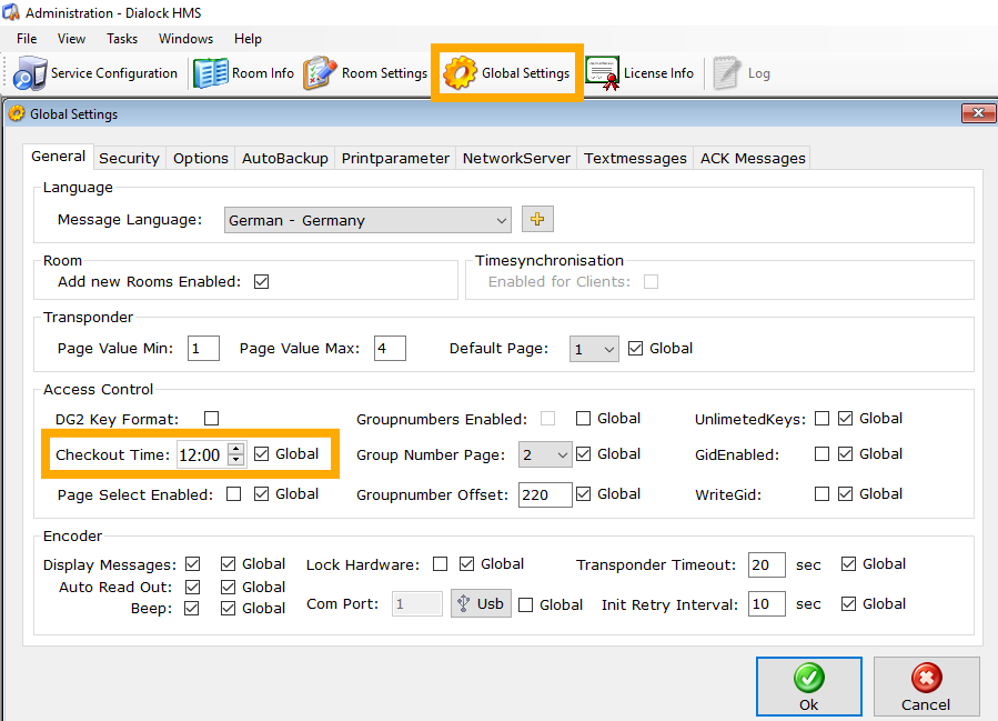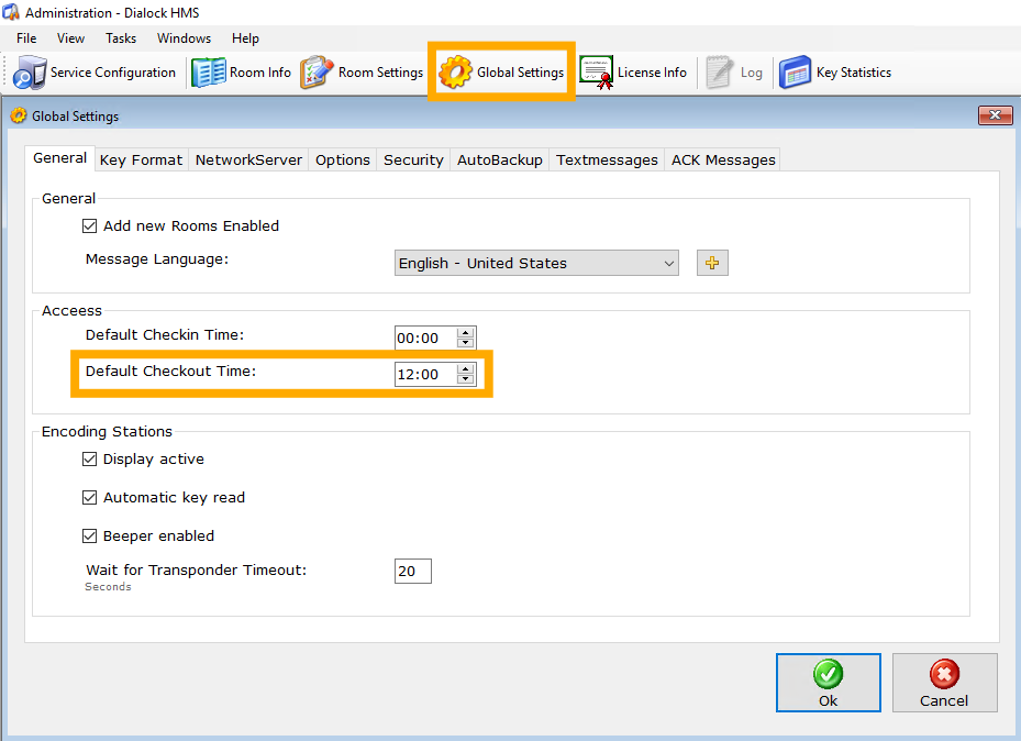 IMPORTANT! If the keys are created via a PMS (Protel, LikeMagic, straiv, etc.), the checkout time must be set in the PMS.
